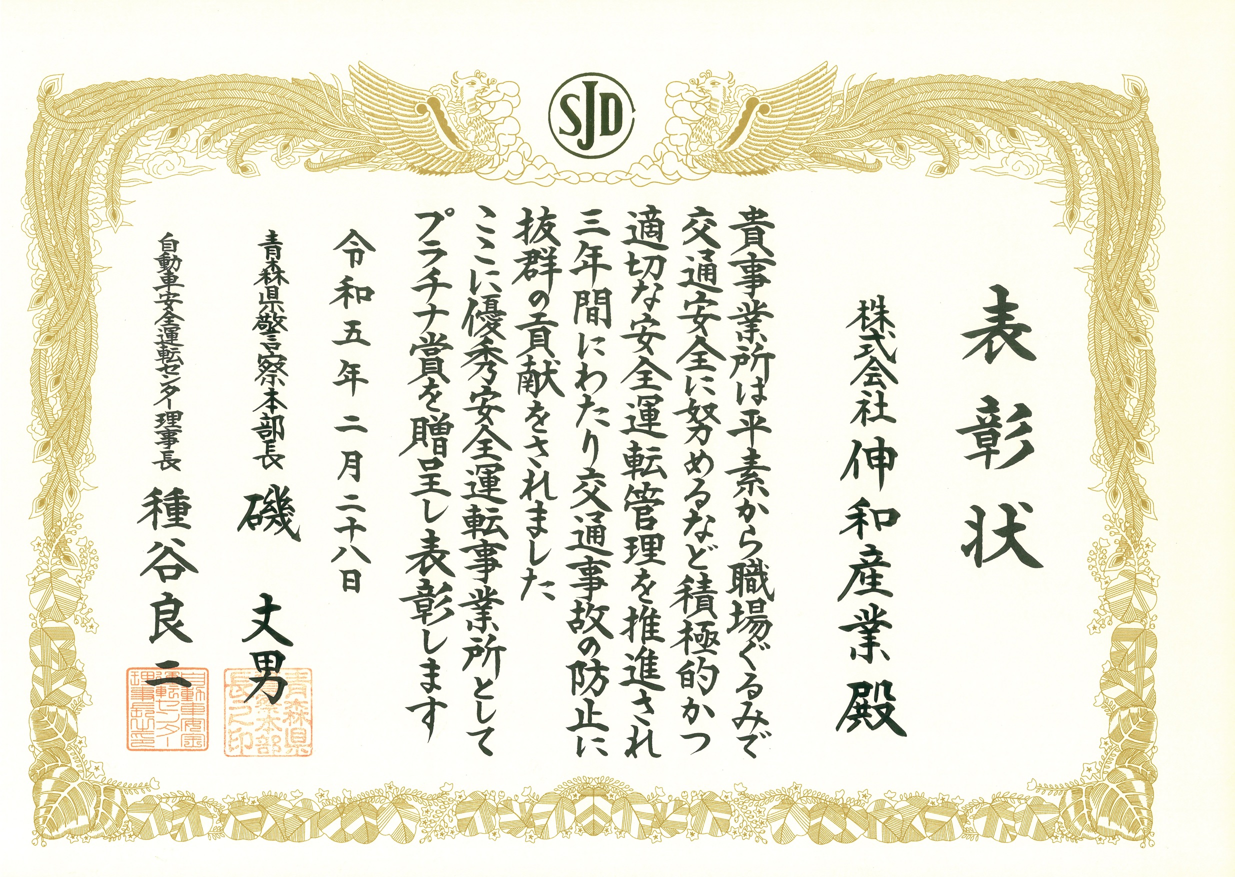 ■令和5年2月 優秀安全運転事業所 プラチナ賞受賞