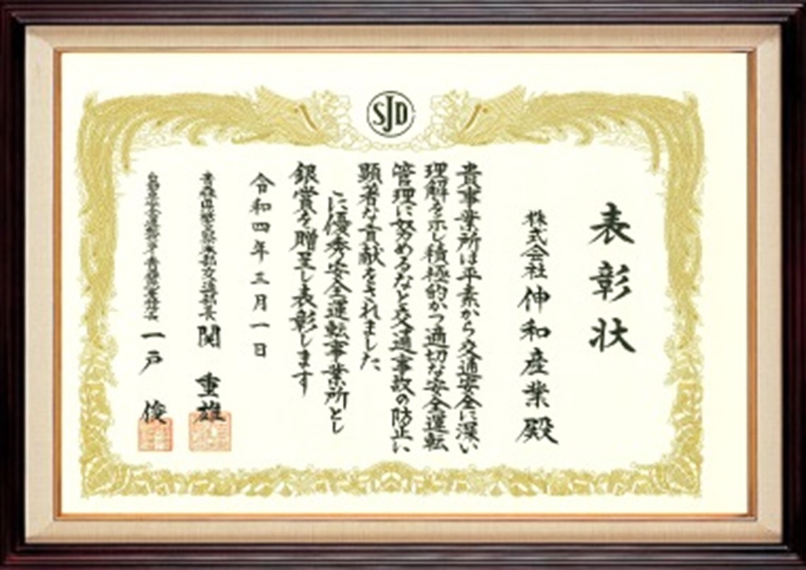 優秀安全運転事業所 銀賞受賞  優秀安全運転事業所 銀賞受賞